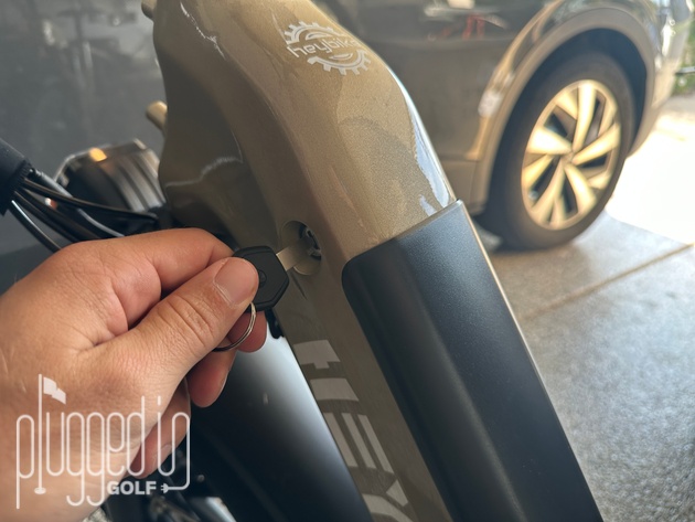 Removing the battery from the HeyBike Ranger S requires the included key (below). I like to remove the battery rather than locking the bike when I take it to run errands. The battery is quite heavy, but I prefer to carry that than tote around a lock and chain and look for something to secure the bike to.