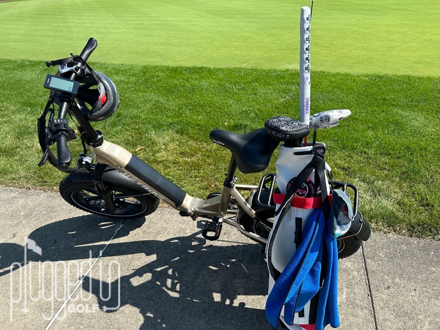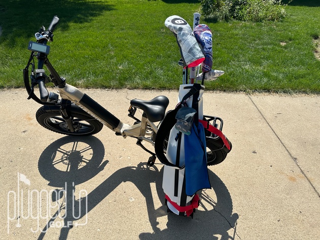 The only thing I had to adjust to was the low step through. I’m used to swinging my leg high over the back of the bike, and that doesn’t work with the golf bag attached.