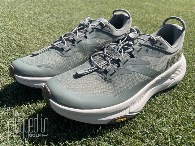 We write fairly frequently about spikeless golf shoes that are at ease off course – but what about the opposite? Can an athletic shoe make the transition to the golf course? I know from experience that a running shoe just doesn’t provide enough stability for a golf swing, and a court shoe doesn’t provide enough traction. Thinking a hiking shoe might do the trick, I put the HOKA Transport GTX to the test.
