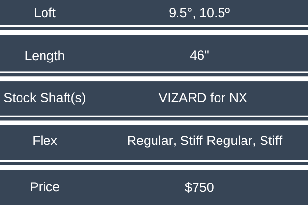 For those who aren’t familiar with Vizard shafts, they’re designed and manufactured in-house by Honma.  The Vizard for Nx shaft features a lightweight design that’s more flexible in the middle.  As Honma puts it: “That lets golfers take a comfortable, easy swing while the shaft does all of the work.”