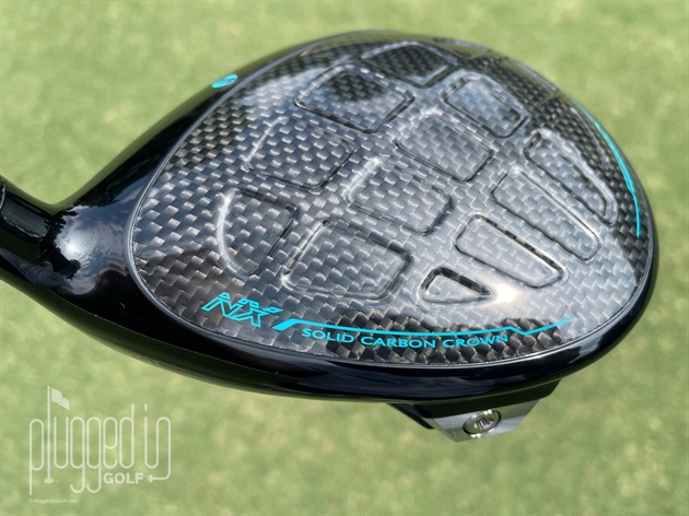 At address the BERES Nx driver crown harkens back to the Dragonfly technology of older Ping models.  The cross pattern and fully exposed carbon fiber weave are truly eye catching, but may be too distracting for some golfers.  The balanced shaping of the head is very appealing.