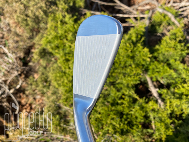 At address, there’s a little more size than you might expect. This is a compact iron from heel to toe, but the top line is a touch thicker than most players irons. Similarly, the sole is a wider than expected. The offset is right on the edge of acceptable for this type of club.