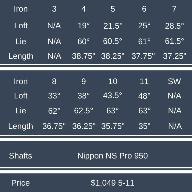 If distance is priority number one and good looks a close second, the Honma TW 747 P irons are going to be right in your wheelhouse. The lofts are very strong and the spin is frighteningly low, but if those are not concerns for you, the performance is outstanding.