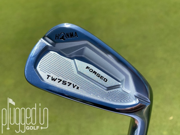In the bag, the TW757 VX irons have a classy, traditional appearance. There’s minimal engraving – just a Honma logo on the toe, “Forged” in the middle of the cavity, and “TW757 VX” near the bottom, all with black paint fill. The shape of the cavity is modern without being futuristic.