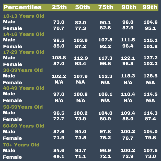 This sample comes from Par4Success’s clients, so I would expect the swing speeds would be slightly higher across the board because you’re dealing with golfers who are serious enough to invest the time and money to really improve their fitness.
