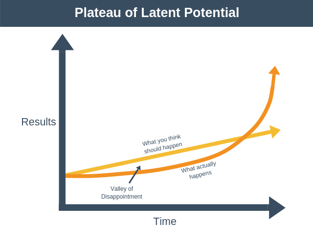 The single most important thing in Atomic Habits is the graph above. This shows clearly the thing that anyone who has gotten good at anything knows: it takes time.