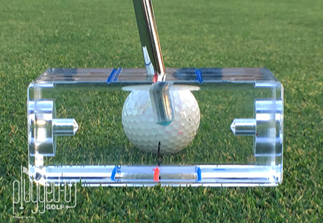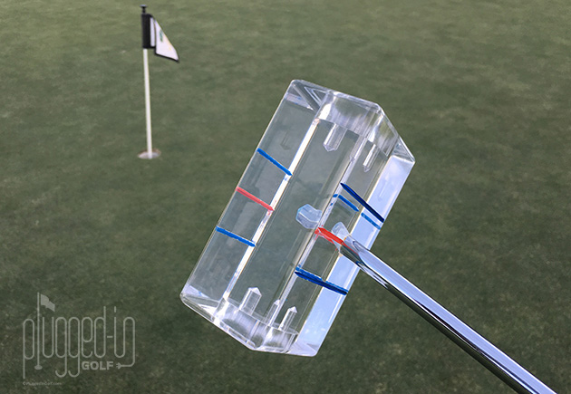 A longer putting stroke with this putter head can be cumbersome. The 1 ½” deep transparent head made it tricky to keep the bottom edge from digging into the turf on some putts. This was very frustrating.