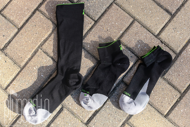 The golf socks from Incrediwear are black with grey toes and a few neon green accents. This commitment to black and grey holds true throughout their entire product line. These are garments meant for performance, not style.