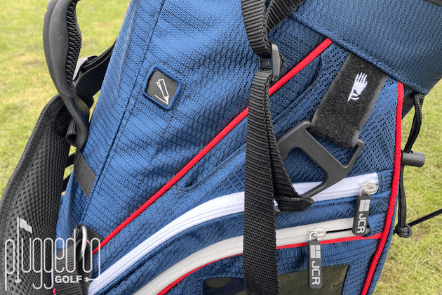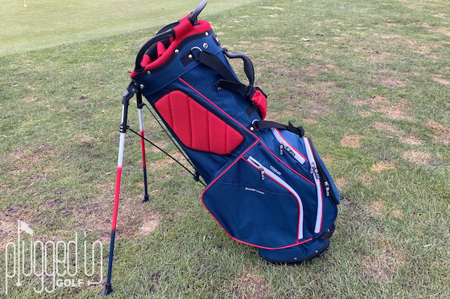 The bag is geared toward those who ride most of their rounds, but at 5.8 lbs, it’s not unreasonable to think that one could comfortably walk 18 with it. It would also work well with a push cart. With the weight of a full set of clubs, the legs engage easily and retract flush with the body of the bag. There is a velcro strap to keep them in place if you want them to stay put.