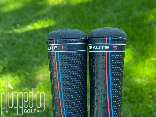 Let’s start with some specs on the JumboMax grips. The Tour Series actually starts a bit lighter than an average grip at 41 grams. That jumps up, quickly, however, when you get into the “real” JumboMax sizes. Their Small weighs 99 grams, the Large 112, and the XL a whopping 123 grams. The Ultralite Series is, of course, much lighter. The Small weighs 48 grams and the XL weighs 50 grams.