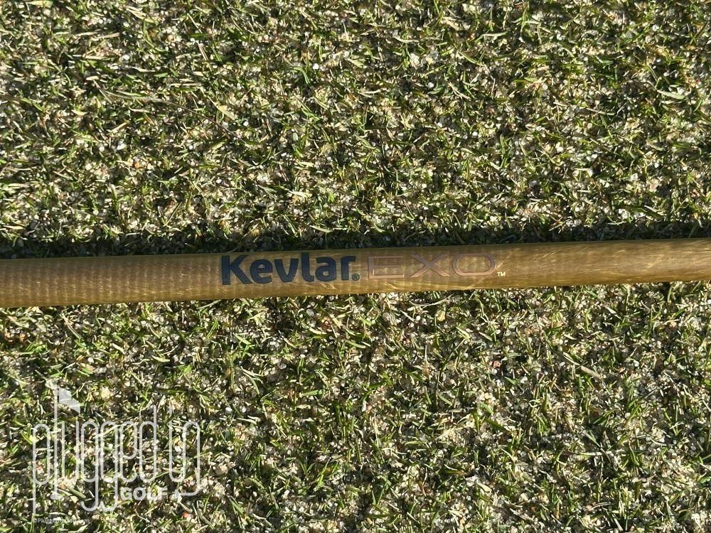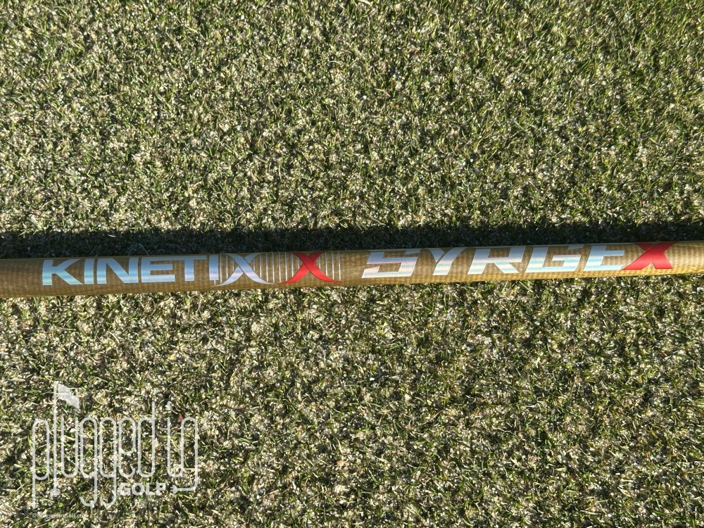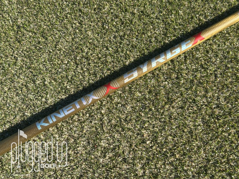 The branding on the  Kinetixx SyrgeX mirrors that of the FlexurX.  “KINETIXX SYRGEX” is written in large, iridescent letters across the middle of the shaft.  Most of the letters are silver save for the second X in each word, which is red.  There’s a black and gold “Kevlar EXO” callout near the tip, but you can hide all of this at address with a logo-down installation.