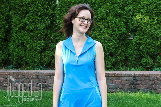 These pieces fit true to size, though I always recommend taking your actual measurements before consulting a sizing chart. The challenge of performance fabric is that it looks best when fitted. You give structure to the clothes, not the other way around. Thus, the tank top looks great, while the polo and dress don’t hang or move in the way you might expect. You can see from the pictures that a smooth, draped look is difficult to achieve from this fabric/cut combination.