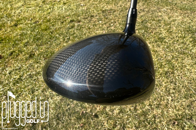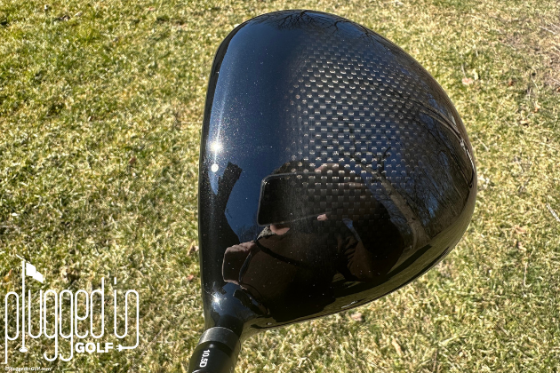 The Kirkland Driver is reminiscent of several other major manufacturers, particularly Mizuno’s newest ST-X (review HERE) from the address position. From that top-down view, it has a premium feel. It’s simple and elegant, featuring a glossy black carbon composite crown with a singular alignment dot. It does present a slightly closed face and upright lie.