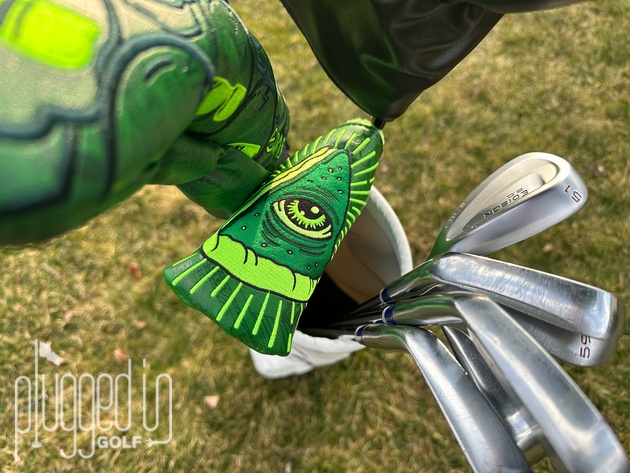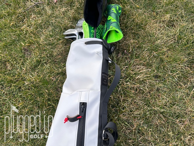 Regarding a max for the half bag (they make a larger one that I did not test), I think ten is about right. I’ve been carrying driver, hybrid, 4I, 6I, 8I, PW, GW, LW, and putter – nine clubs – and everything gets in and out pretty easily, even with midsize grips. I think one more club would be fine, but two more might start to get tangled.