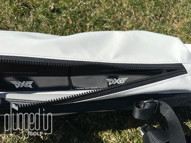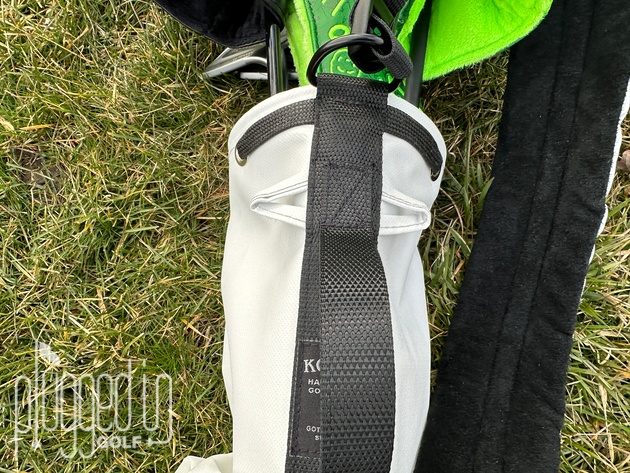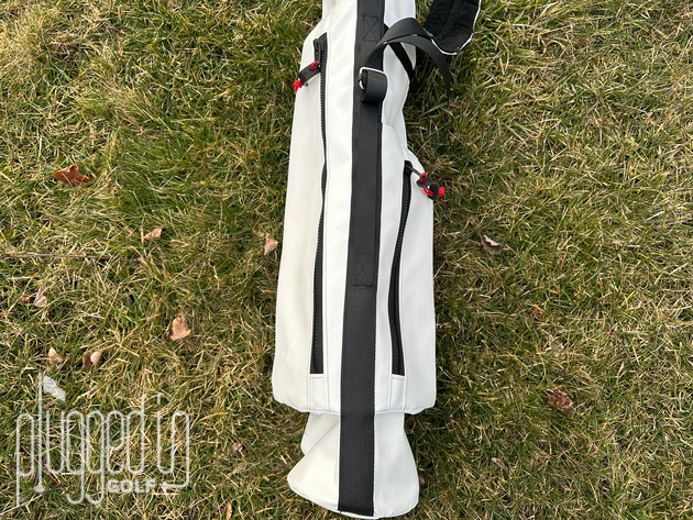 Koger golf bags are built for minimalists, so the features are pared down to the essentials. On either side of the bag, there is a large pocket. The “ball pocket” runs about half the length of the bag, the “apparel pocket” roughly two thirds. As you can see above, the pockets are quite deep, so you can pack dozens of balls, if you need. Being a little OCD, I do like having a valuables pouch inside the apparel pocket so I can find my wallet and keys quickly.