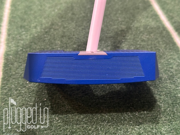 Finally, there are many customization options for the MEZZ.1 MAX. There are seven head colors – black, cappuccino, blue (shown here), orange, platinum, red, and pink. Additionally, L.A.B. Golf offers eleven alignment options on the silver portion of the head, from blank to lines to a heart.