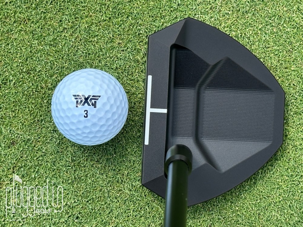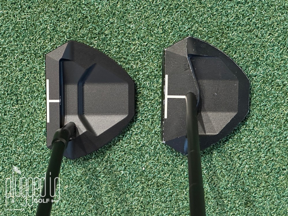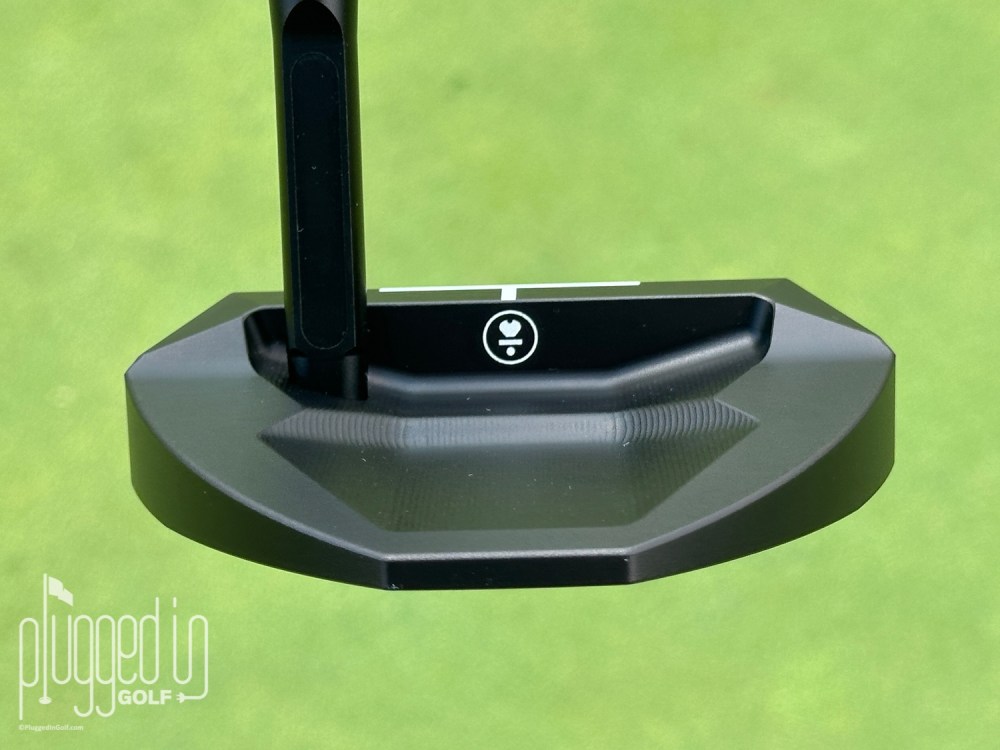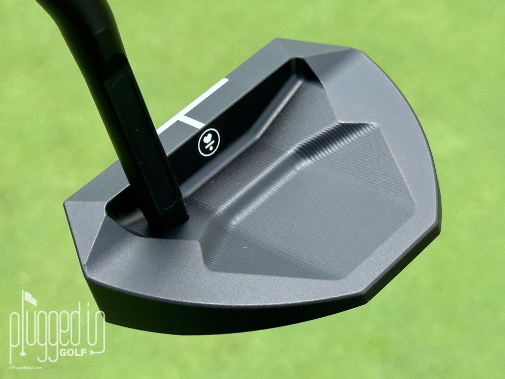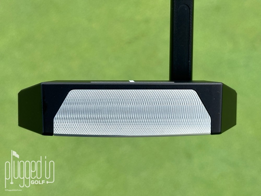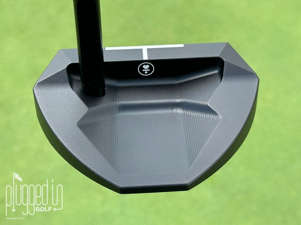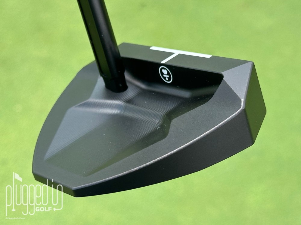 Overall, this is a large, angular mallet that combines modern and traditional elements. While it’s size and sharp lines feel more futuristic, the design is clean and straightforward, sitting comfortably behind the ball. I like how the body narrows toward the face, like an arrow pointing toward the hole.
