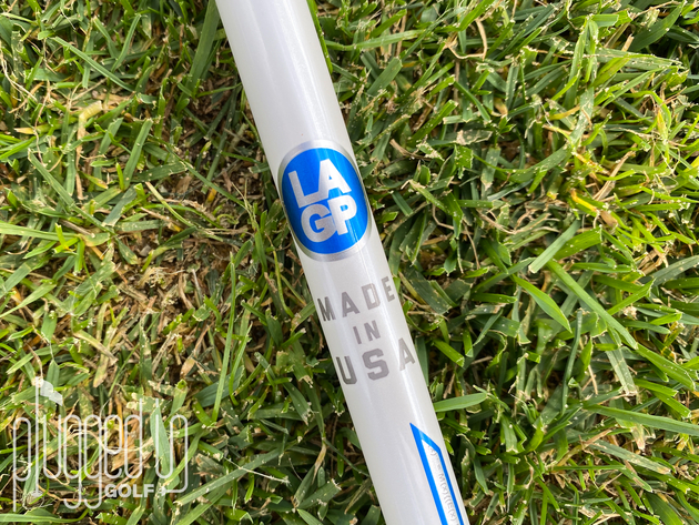 If you’re wondering why I chose a picture of a blank white shaft, look closer. On each of the LAGP Tour AXS shafts, the model name, in this case “BLU,” is written in white-on-white on the “logo down” side. The white-on-white is a clever choice that allows for more branding without creating distractions at address.