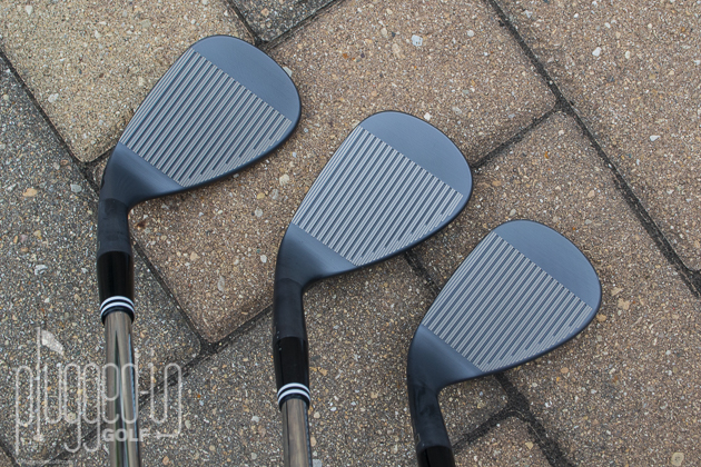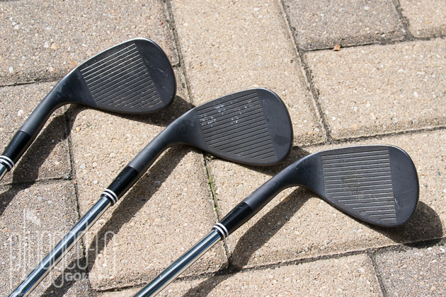 We started this test with three brand new Cleveland RTX-3 wedges. We tested each wedge on a launch monitor under four conditions: pitch shot (approx. 50 yards), full swing, and pitch and full swing with a wet club face.