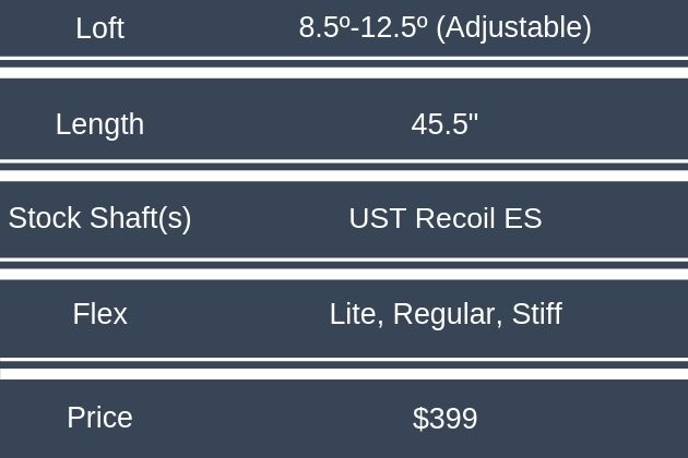 The stock UST Recoil is a solid, “decent for everyone” type of shaft. I felt a substantial kick in the butt section of the shaft and a moderate amount of torque in the tip. With the weight forward, the shaft felt more active which likely contributed to my poorer results with that configuration.