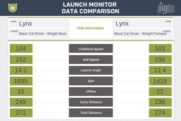 On the launch monitor, I was struck by how easy it was to lose ball speed with the weight forward. With the weight back, the Black Cat is a solid, forgiving driver. When the weight is forward, mishits are stringently penalized.