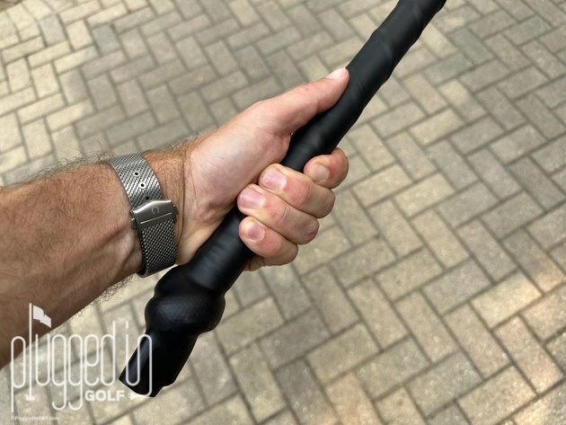 The JetStick (above) is the closest thing to a conventional speed trainer. It’s light, entirely speed-focused, and meant to be swung all-out. What makes it unique is the ball and chain at the end which produces a sound during the swing, which is key. One of the key ideas in Mach 3 is “speed out in front,” and creating the sound at the right time lets you know you’re achieving that.