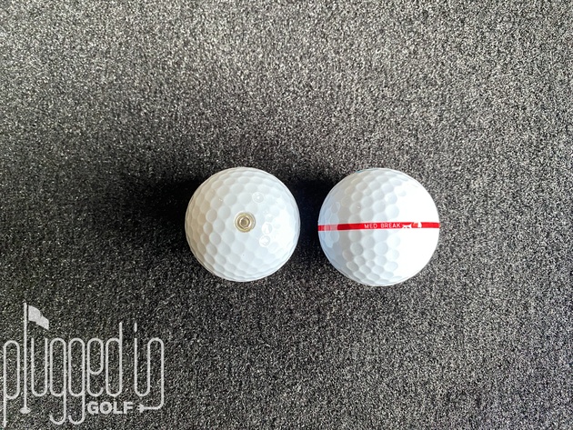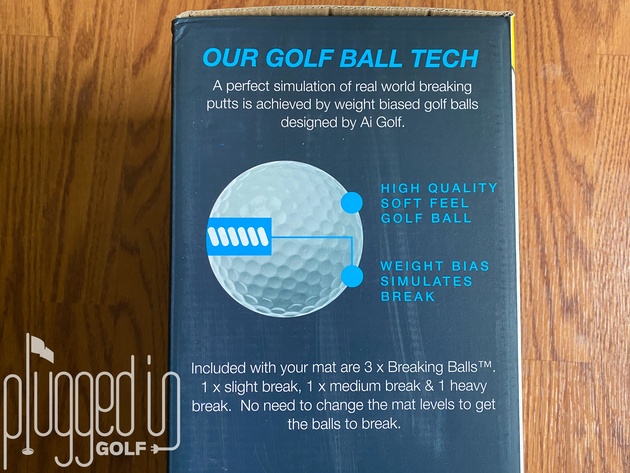 Next, the breaking balls. They have a weight placed in one side (see below), and they do break noticeably and predictably. There is a clear difference in how much each different ball moves, too. The balls are a touch firmer than a premium ball, but with all the putts being inside ten feet, that’s not a deal breaker.