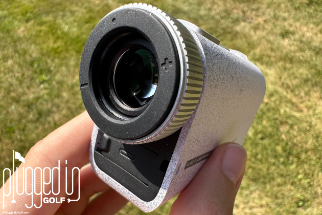 That makes it one of, if not the, lightest rangefinders in golf. That lightweight profile makes it an extremely appealing option for a number of different golfers. Those who are looking to shed weight from their bag, those with small hands, women, juniors, or players who want to keep their rangefinder on them at all times.