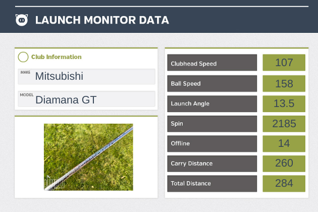Per Mitsusbishi, the Diamana GT has launch and spin characteristics that fall between the PD and TB. Where the TB is mid-high launch with mid spin and the PD is low launch, low spin, the Diamana GT is mid/low in both launch and spin. To crib from their notes, it “launches lower than TB and spins more than PD.” This fits precisely with what I saw in my testing. The Diamana GT launched higher and spun a bit more than the PD. I really like that the differences were not huge – this combination of offerings allows for a fine-tuned fitting.
