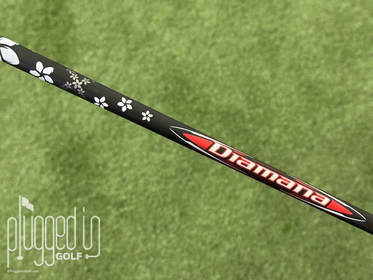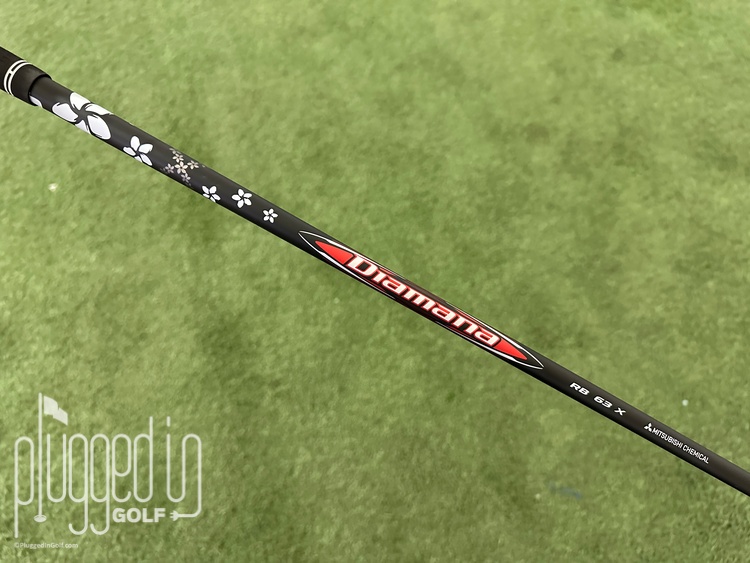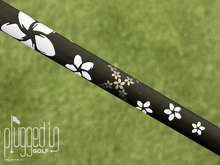 The Mitsubishi Diamana RB shares the same “retro aesthetic” with the WB and BB. All three have a matte black base which provides excellent contrast for the white and silver graphics. Diamana’s trademark flower band figure-eights around the shaft just below the grip amid a field of falling white flowers. It’s a great look that doesn’t scream for attention but doesn’t hide from it, either.
