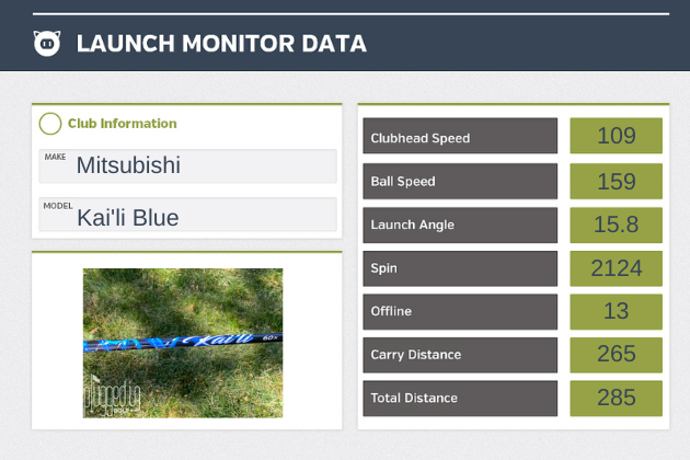 Looking at the dispersion and predictability, the Kai’li Blue was impressive. Mitsubishi states that this is the “stablest and smoothest blue profile yet.” I felt like all but my most aggressive swings were handled well. I got my best results – primarily tight draws – when my swing was smoother, but even 85%-90% swings stayed in play.
