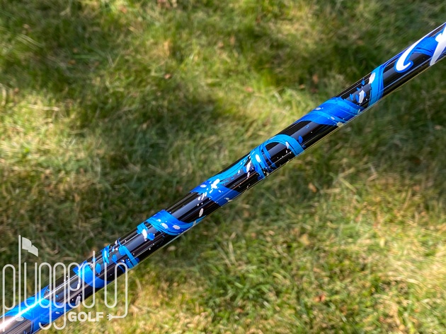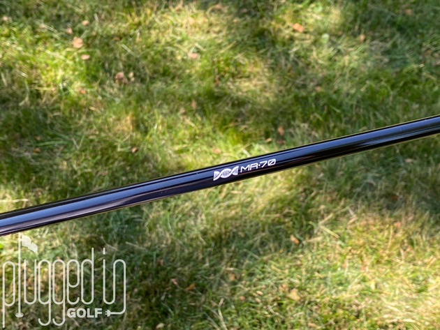To keep the graphics from being a distraction at address, they stop at the shaft’s midpoint. From there to the tip, it’s solid black save for the small “MR-70” logo near the club head. If the shaft is installed logo down, that will be hidden, too.