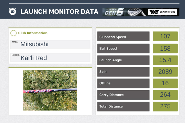 The powerful feeling of the Mitsubishi Kai’li Red translated to the numbers in the form of outstanding ball speed. I never take a 1.5 smash factor for granted, but I got close because the Kai’li Red was so routinely punishing the golf ball. If you’re looking for a shaft that can give your speed a little boost, this is definitely worth a few swings.