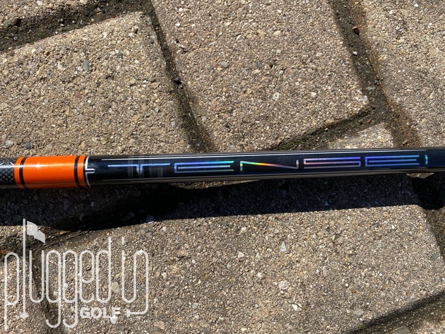 The Mitsubishi TENSEI 1K Pro Orange, like the 1K Pro White, is obviously a TENSEI and obviously a little different. What first grabbed my attention is the iridescent finish on the TENSEI branding. This finish is carried to the other side of the shaft in the “Multi Material” logo.