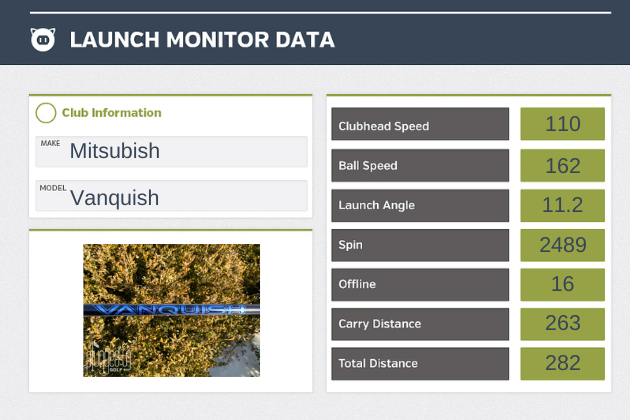Mitsubishi bills the Vanquish as mid/high launch and mid spin, but, for me, the change in weight somewhat overruled the shaft’s design. This is another example of why we always emphasize the importance of fitting. I actually launched the Vanquish a bit lower than other shafts, particularly at the start. My initial sessions with the Vanquish saw a trend towards pulls, with the associated lower launch. As I got more comfortable with the lighter weight, the ball flight straightened out and came up a bit.