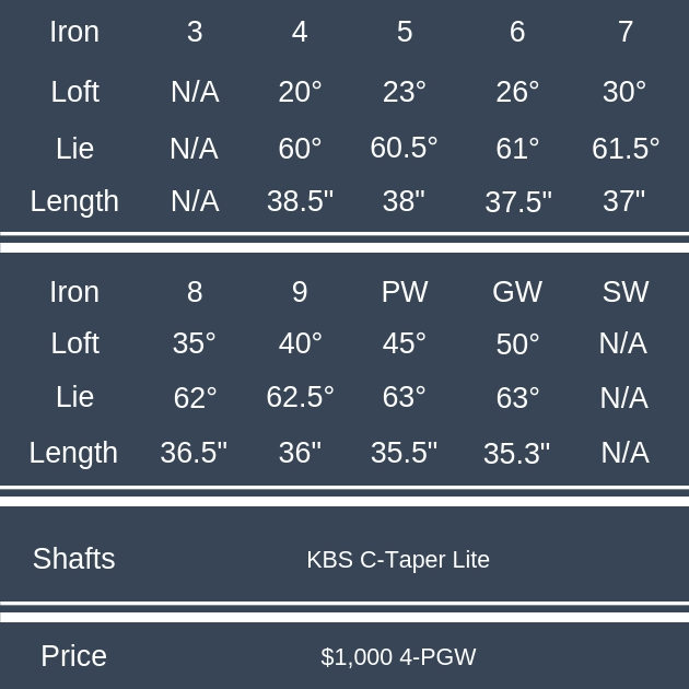 Was fitted for a new set a few days ago. Loved the feel of them and excited to put them in the bag. Replacing Titleist 714 AP2s that I’ve had for 3-4 years now. The fitter did a great job trying several shaft options finding the one that fit my game the best.