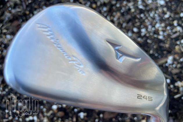 The back has minimal branding with a naked Mizuno logo embossed close to the sole while “Mizuno Pro” and “245” are displayed along the heel and toe. The traditionally seen Mizuno numbers are etched in white right on the bottom of the toe of each club. A subtle but sleek design.