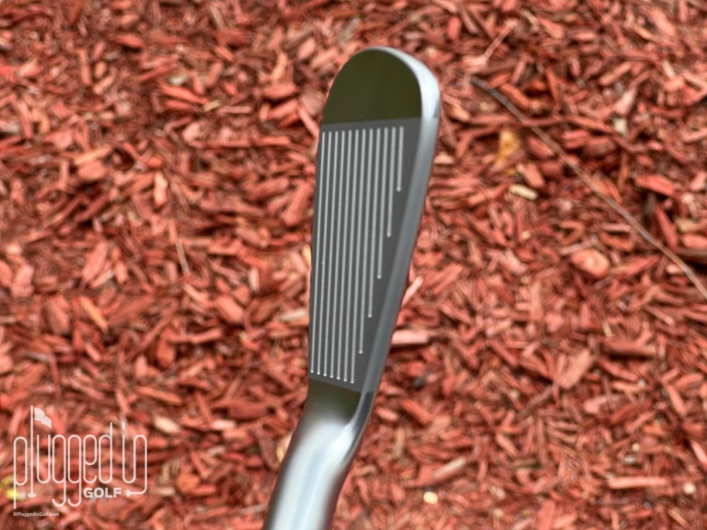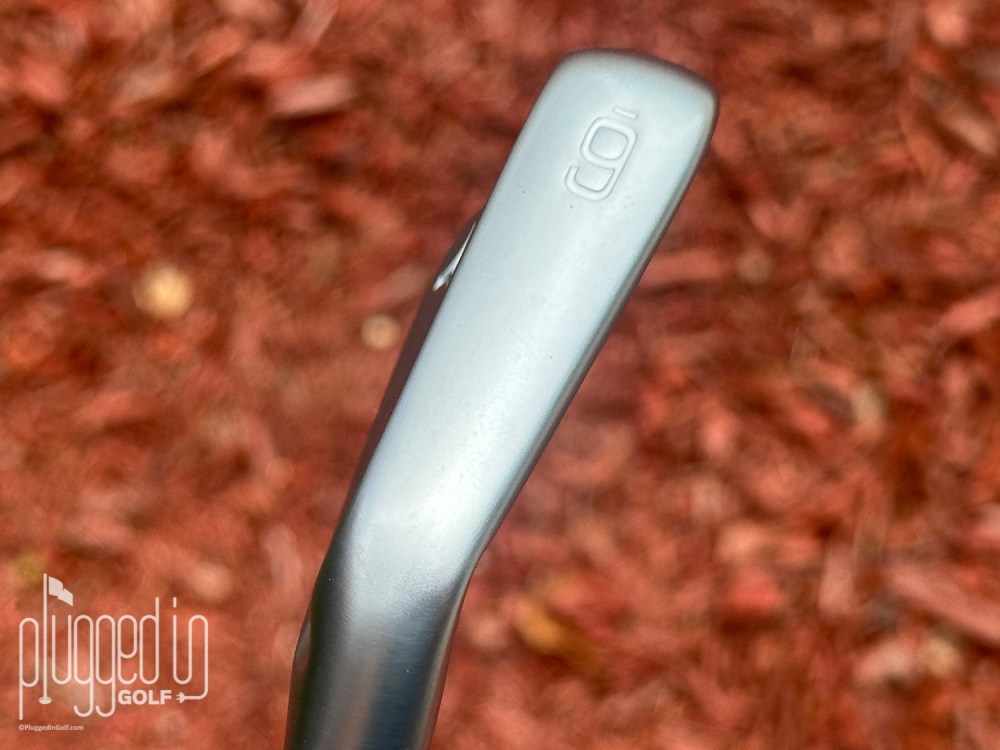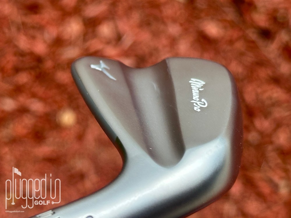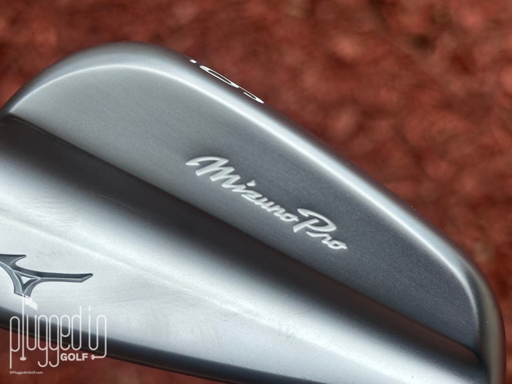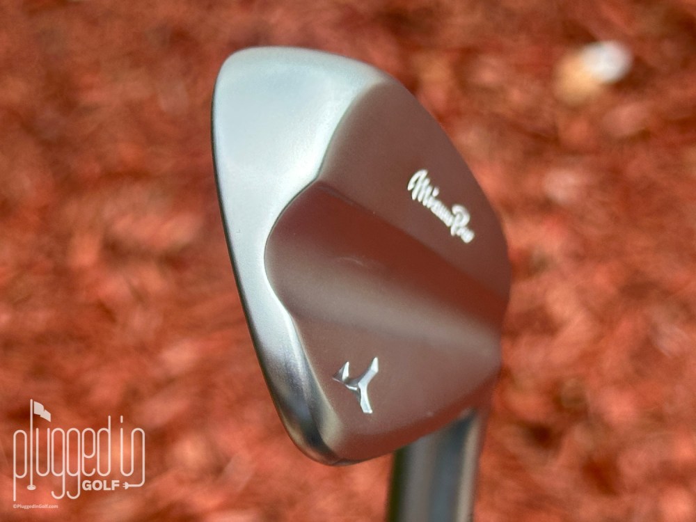 In the bag, the “nickel chrome soft white satin finish” looks great and also reduces glare. The Channel Back Design divides the club in half with a small “Mizuno Pro” at the top and the running bird logo on the low toe. This is a club that looks like it would be at home in any era.