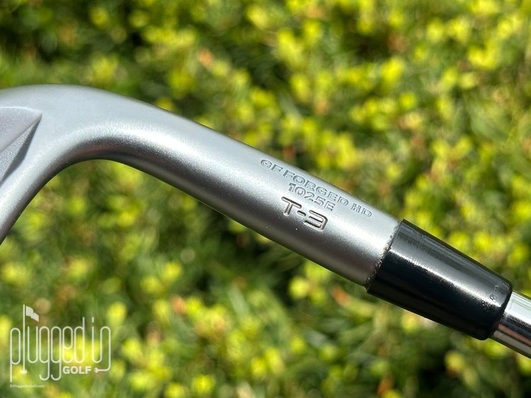 The Mizuno Pro T-1 (above) and T-3 wedges have the same construction as the new Pro S-3 irons [review HERE]. They’re “Grain Flow Forged” from 1025 Pure Select Mild Carbon Steel with a thin copper underlay beneath the finish. The result is a feel very similar to those irons.