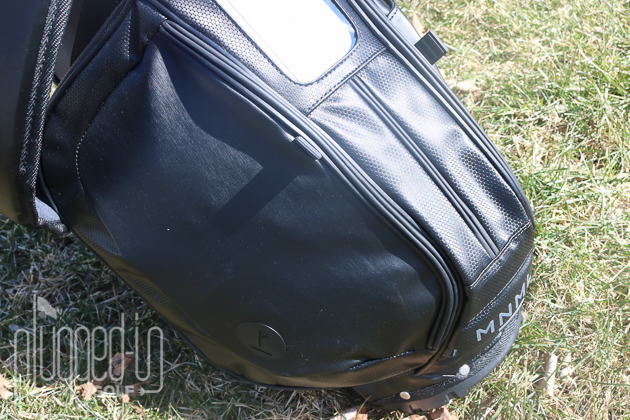 The stealthy, sleek look of the MNML golf bag starts with the material. It has a slight sheen to it, and it stands out in a world of nylon and flashy colors. A minimalist approach to branding also keeps the bag from looking like the billboards that many golfers carry.