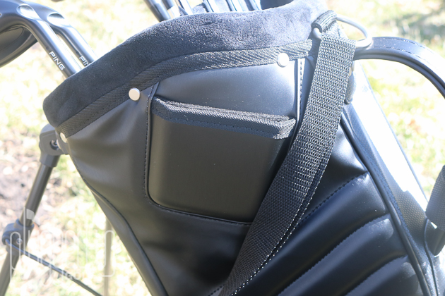 For the player that likes to film their swing, the “Phone Holder Filming Pocket” (above) is a fantastic feature. Instead of balancing your phone on a bag stand or carrying around a tripod, you can slide it right into this pocket to see your swing.