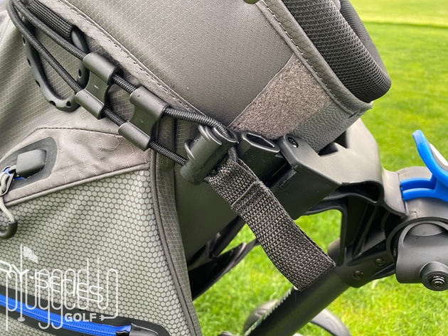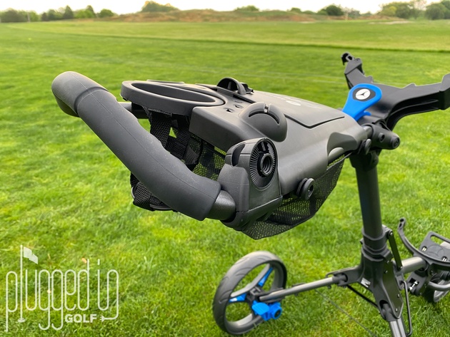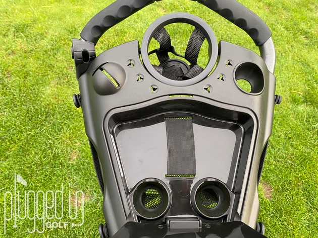 When you open up the console, you’ll find two more ball cradles and space to store your valuables or on-course accessories. The last storage area is a net under the handle (see below). I prefer to keep my valuables in the net and my rangefinder in the console, but there’s no wrong way to use all this space.