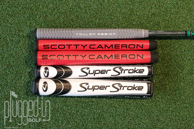 We brought together five testers with handicaps ranging from 0 to 10. Each player rolled five putts with each of five different putter grips – a standard sized Lamkin grip, mid-size and jumbo Scotty Cameron Matador grips, and Super Stroke 2.0 and 5.0 grips. Every putt was measured on SAM Puttlab.