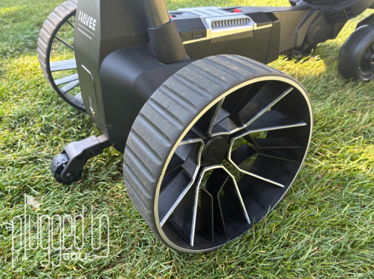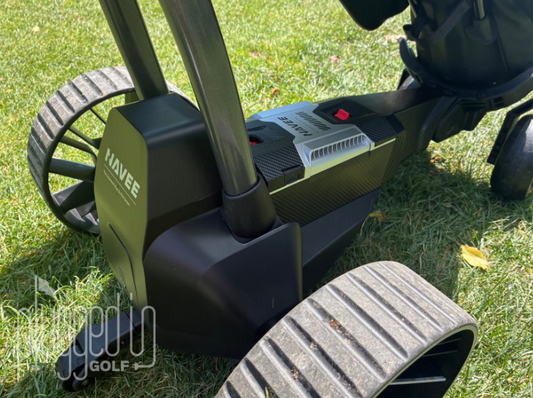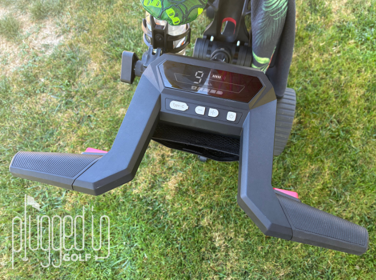 From here, it was as simple as using a basic television remote. Up, down, left, and right on the remote steered the NAVEE Birdie 3X while a press and hold feature allowed the cart to follow me as I walked each hole. There is a screen on the cart which shows battery life and the maximum speed. Just below the screen is the power button and the up and down buttons used for the speed governor. In the event you want to control the system yourself, there are two handle triggers which allow the user to guide the cart with assistance. Overall, it’s a user friendly experience which requires minimal prep.