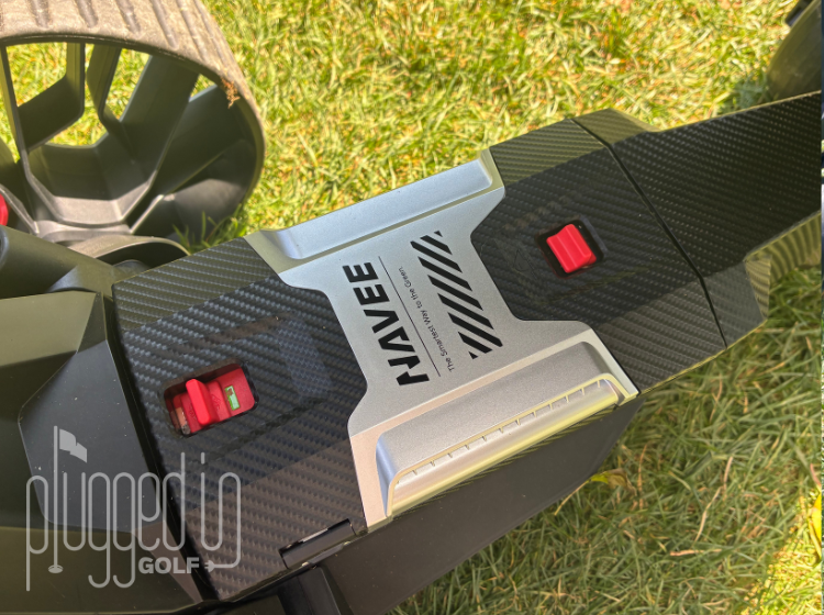 Transporting the NAVEE Birdie 3X to the course for the first time, I noticed it was only slightly bigger than my non-motorized push cart. I drive a 4Runner, so while I have ample room for both a cart and golf bag, things could be tight if you are trying to fit all of this in a sedan. Regardless of vehicle, NAVEE designed the cross bar to double as a carrying handle when folded up, making the 38 pound unit feel much lighter.