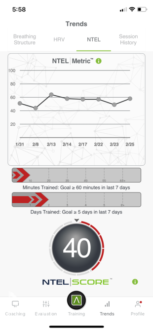 The other parts of the app are fairly self explanatory. Training is where you’ll spend most of your time. You can also check in with Evaluations as regularly as you like. Trends will show you the patterns in your training and evaluations.