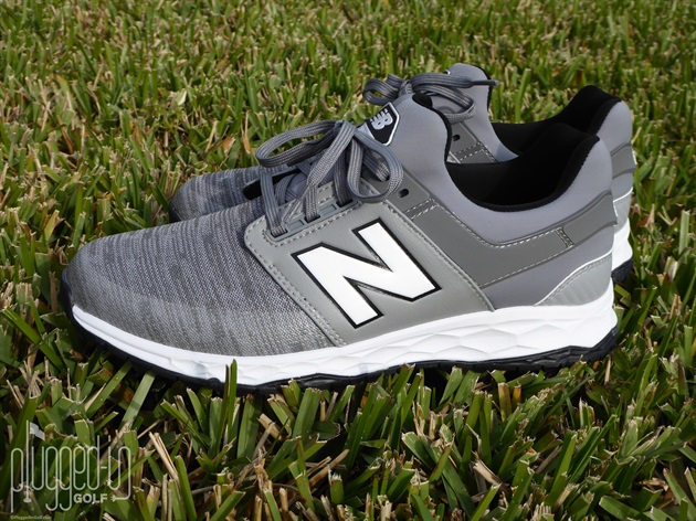The New Balance Fresh Foam LinksSL could certainly pass for a running shoe from the topside. The uppers feature a big enough variety of materials and finishes that the shoe would look busy if not for the unifying gray and white colors. The shoes also come in black, white/navy, white/green and blue/white/red.
