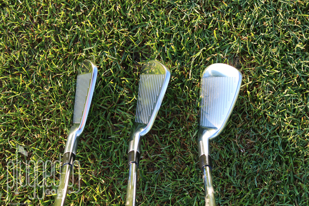One interesting aspect of the address appearance is the shape of the head. In the long irons, the 902s are more square. As the loft increases, the heads become more rounded, particularly in the toe.