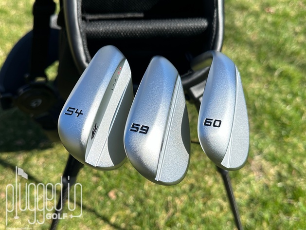 Between the SS (left) and VS (right) is the New Level SPN-FF wedge. The shape of this wedge is very similar to the VS, but the obvious difference is that the grooves that extend all the way to the toe.