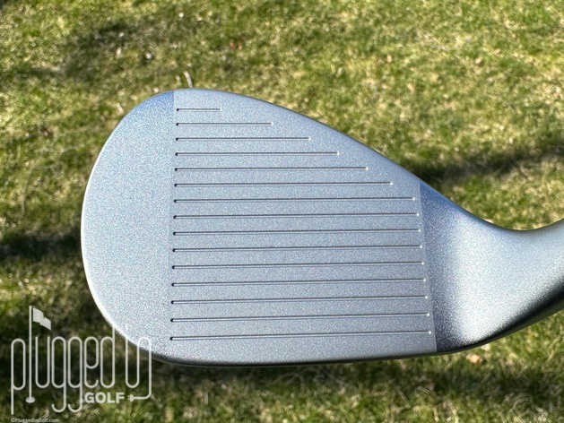 The New Level SPN-FF wedge has Full Face grooves. You can see above that the SPN-FF has a similar sole to the SPN-VS with significant heel, toe, and trailing edge relief, but there are two key differences. The SPN-FF has a slightly wider sole, but the bounce is lower – 6 or 7 degrees (depending on loft) versus 10 degrees in all of the SPN-SS and SPN-VS wedges.